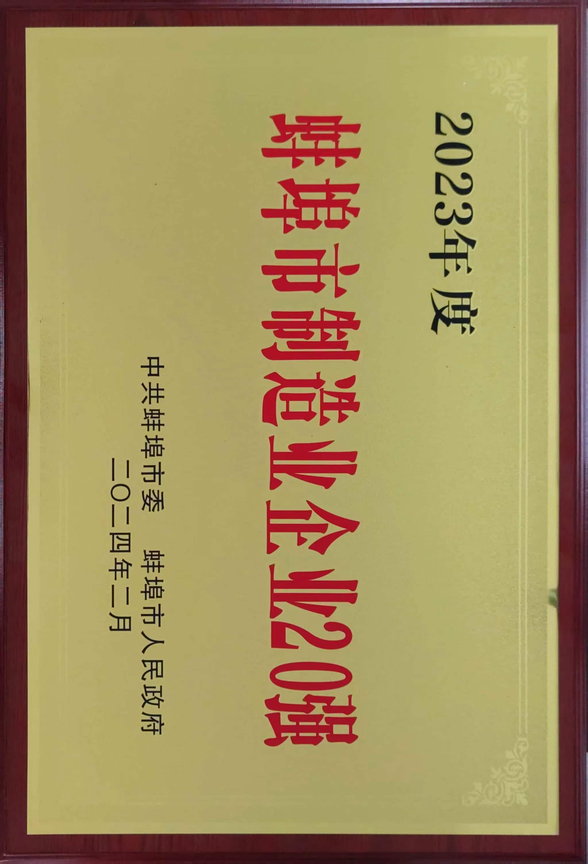 2023年度蚌埠市制造業(yè)企業(yè)20強
